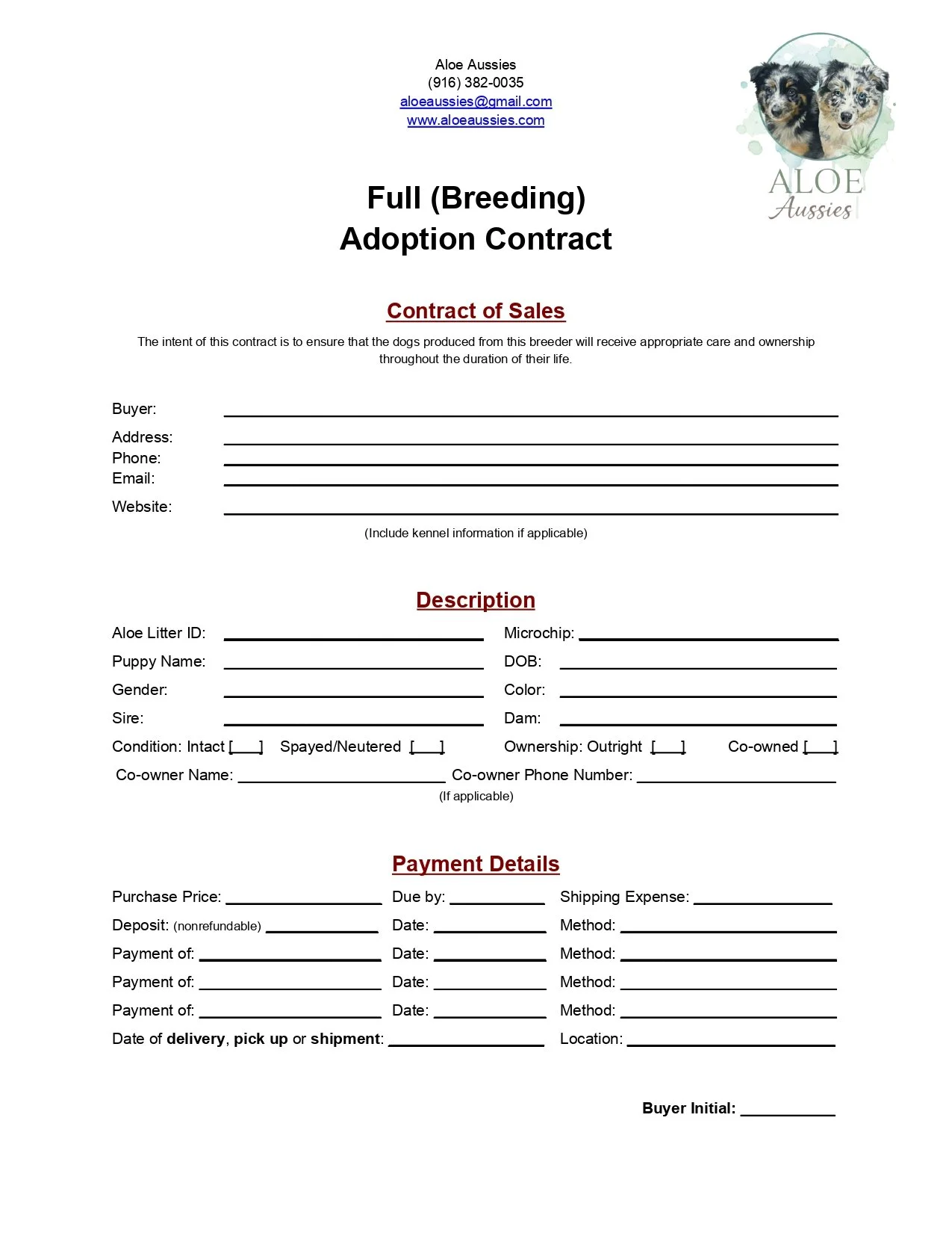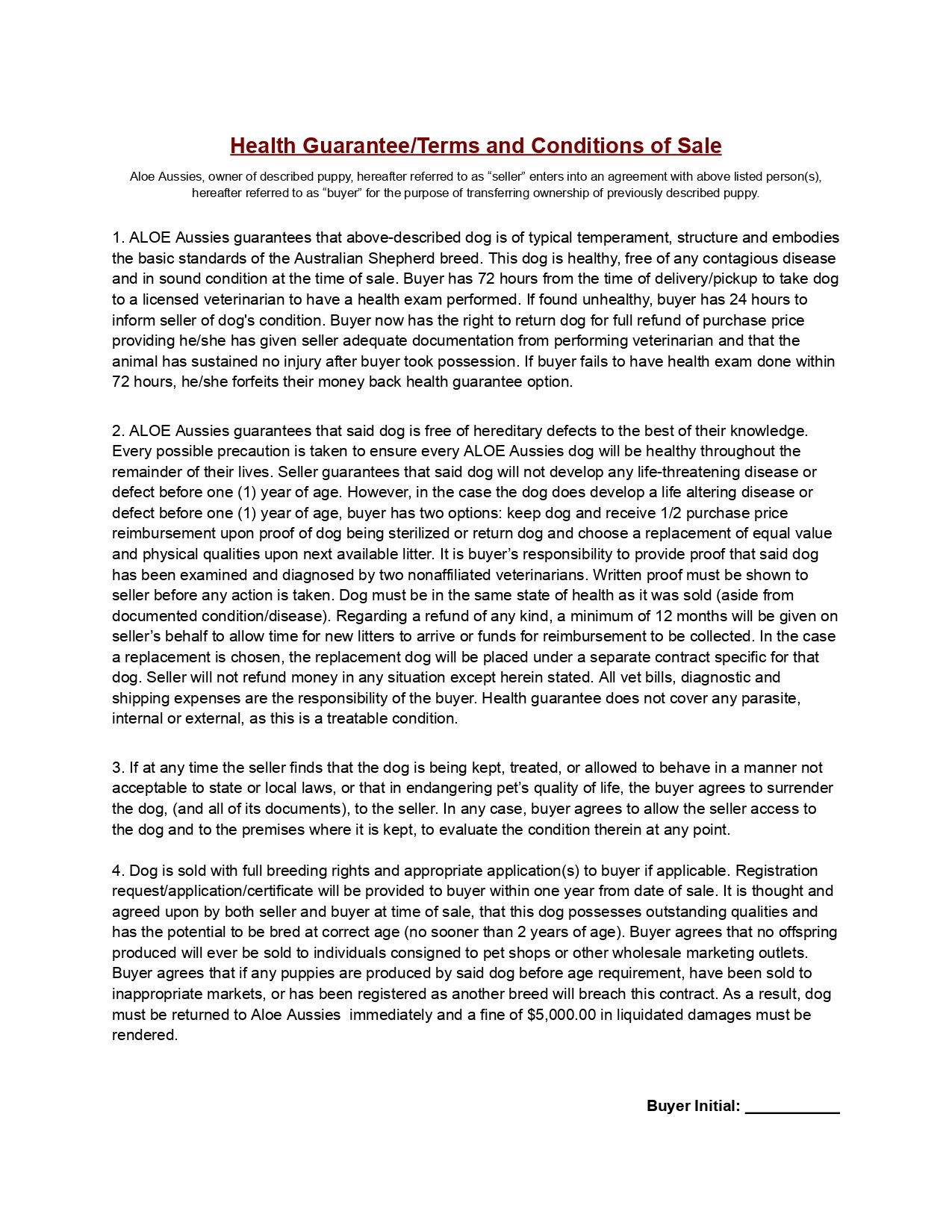 At Aloe Aussies, we take lifelong responsibility for every dog we produce. No Australian Shepherd bred here should ever find themselves without a safe place to land. Every puppy is placed under contract with the clear understanding that if circumstances ever change, that dog is to be returned to us. Our breeding responsibly does not end at placement.